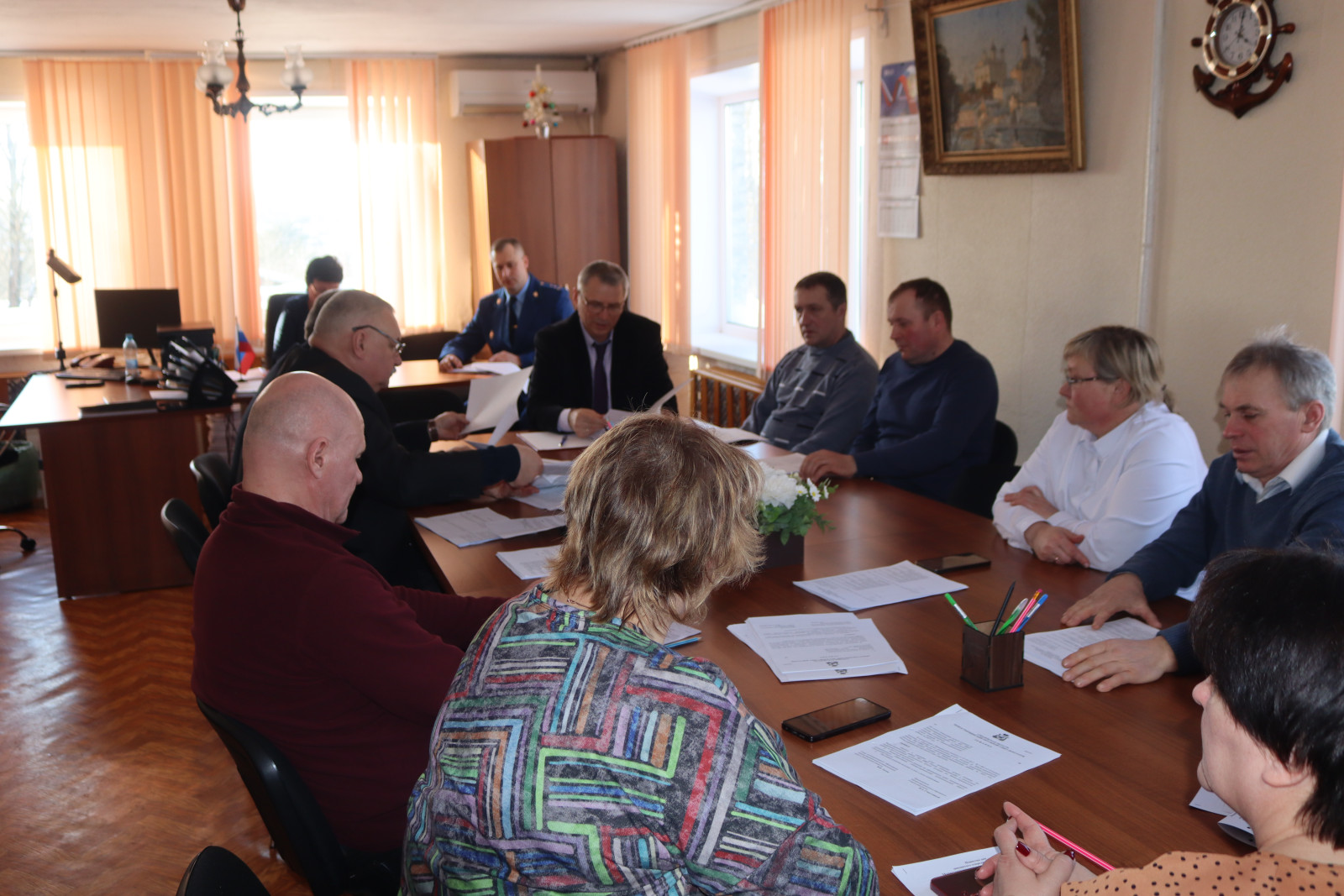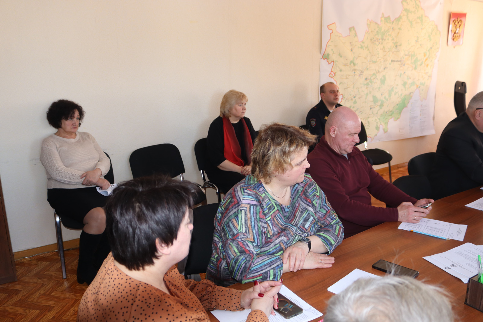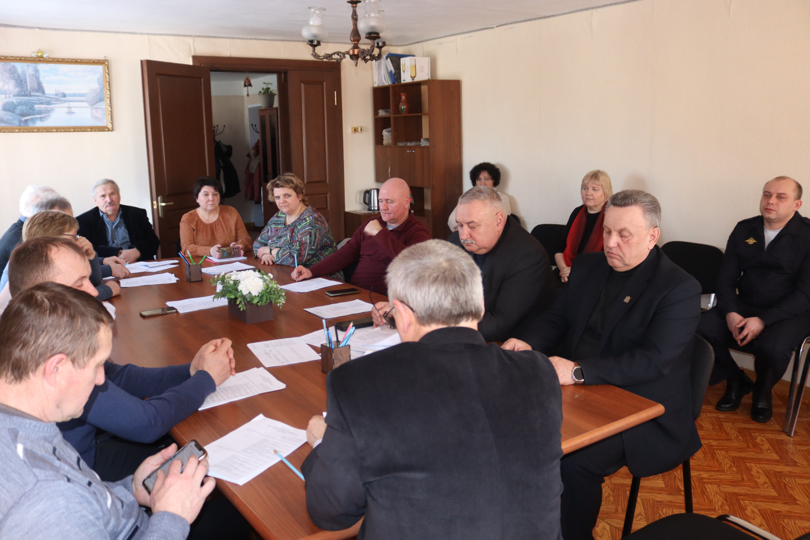 В заседании приняли участие Глава муниципального образования «Монастырщинский муниципальный округ» Смоленской области Виктор Борисович Титов, депутаты Монастырщинского окружного Совета депутатов первого созыва, прокурор Монастырщинского района юрист 1 класса Шмелев Алексей Андреевич, начальник отделения полиции по Монастырщинскому району МО МВД России «Починковский», майор полиции Игнатьев Дмитрий Михайлович, председатель Контрольно-ревизионной комиссии муниципального образования «Монастырщинский муниципальный округ» Смоленской области Людмила Васильевна Закурдаева, руководители структурных подразделений администрации округа.