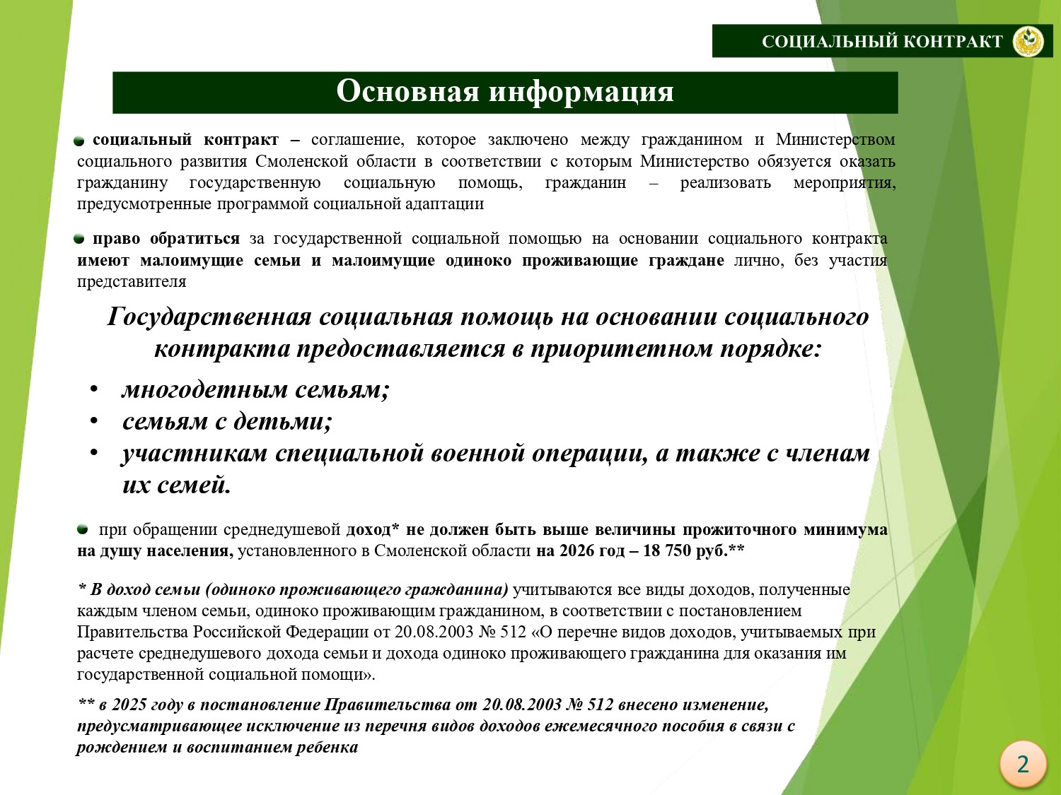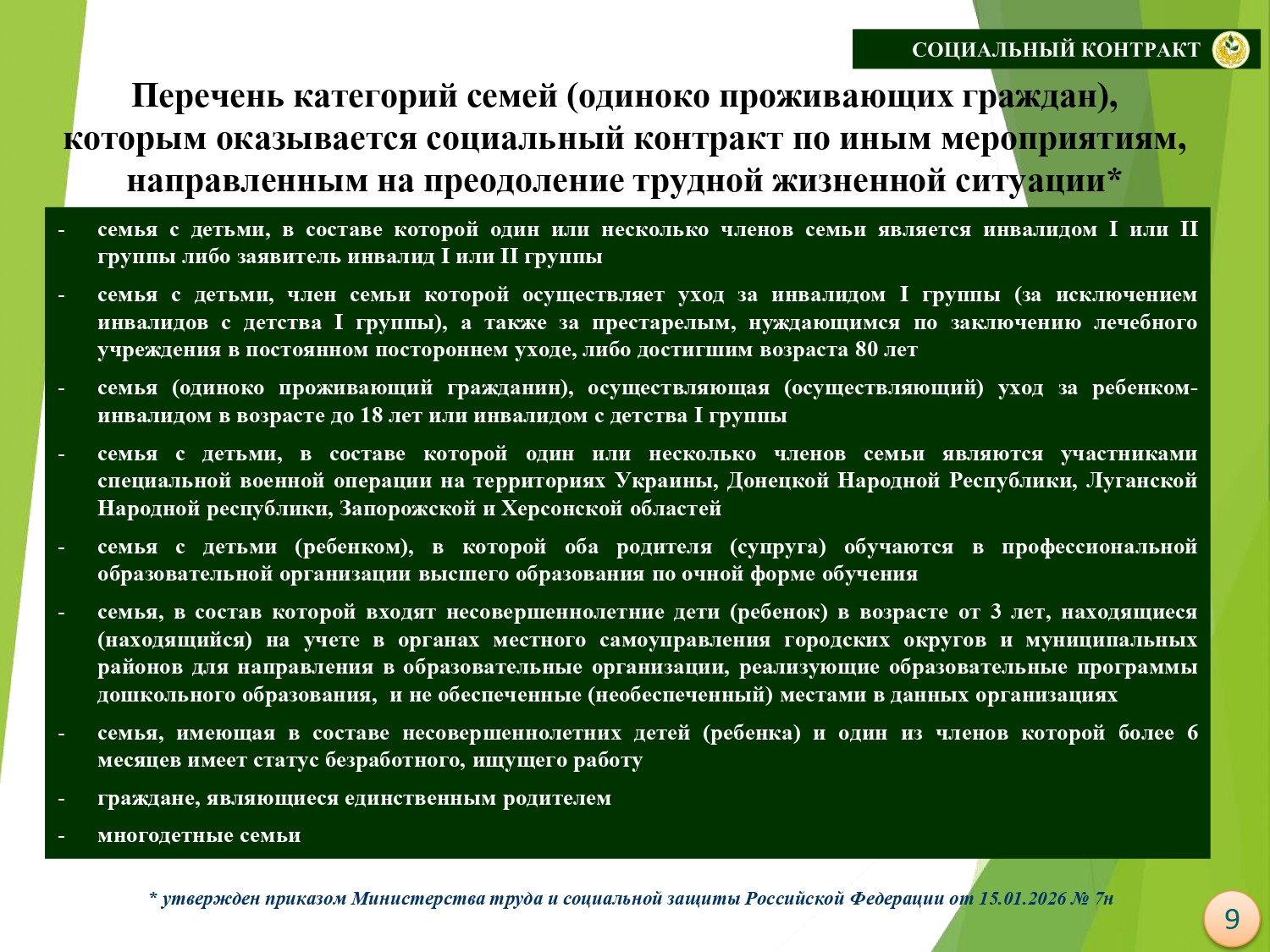 Государственная социальная помощь на основании социального контракта