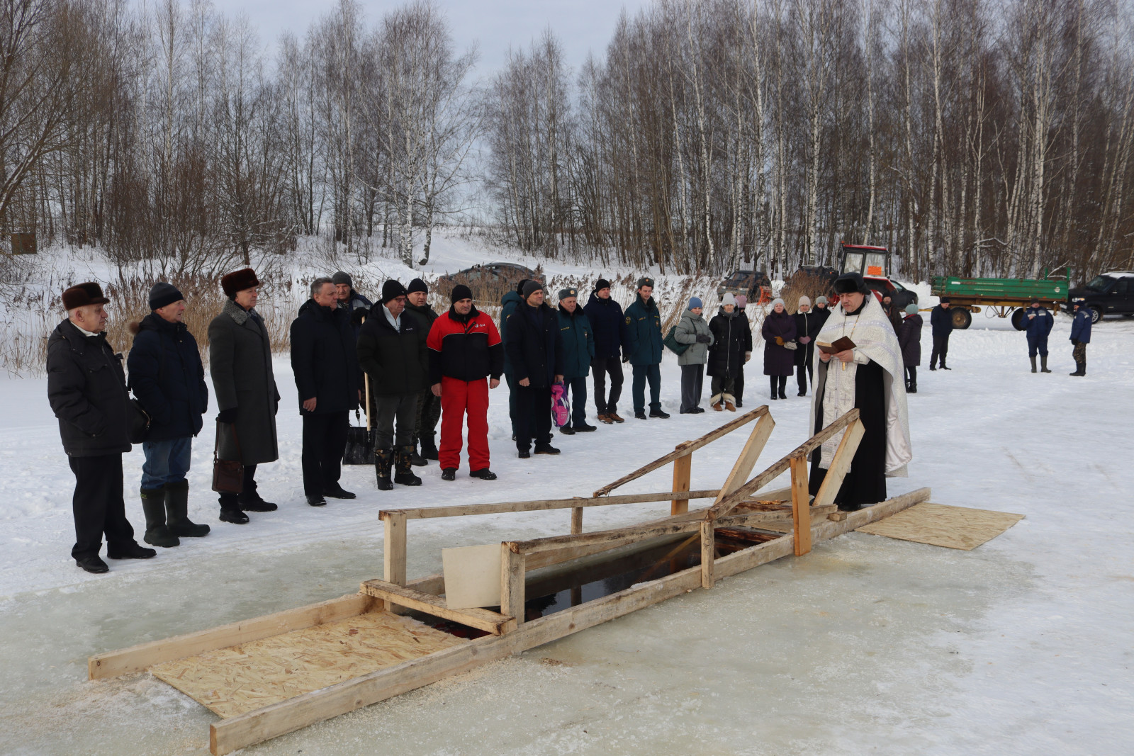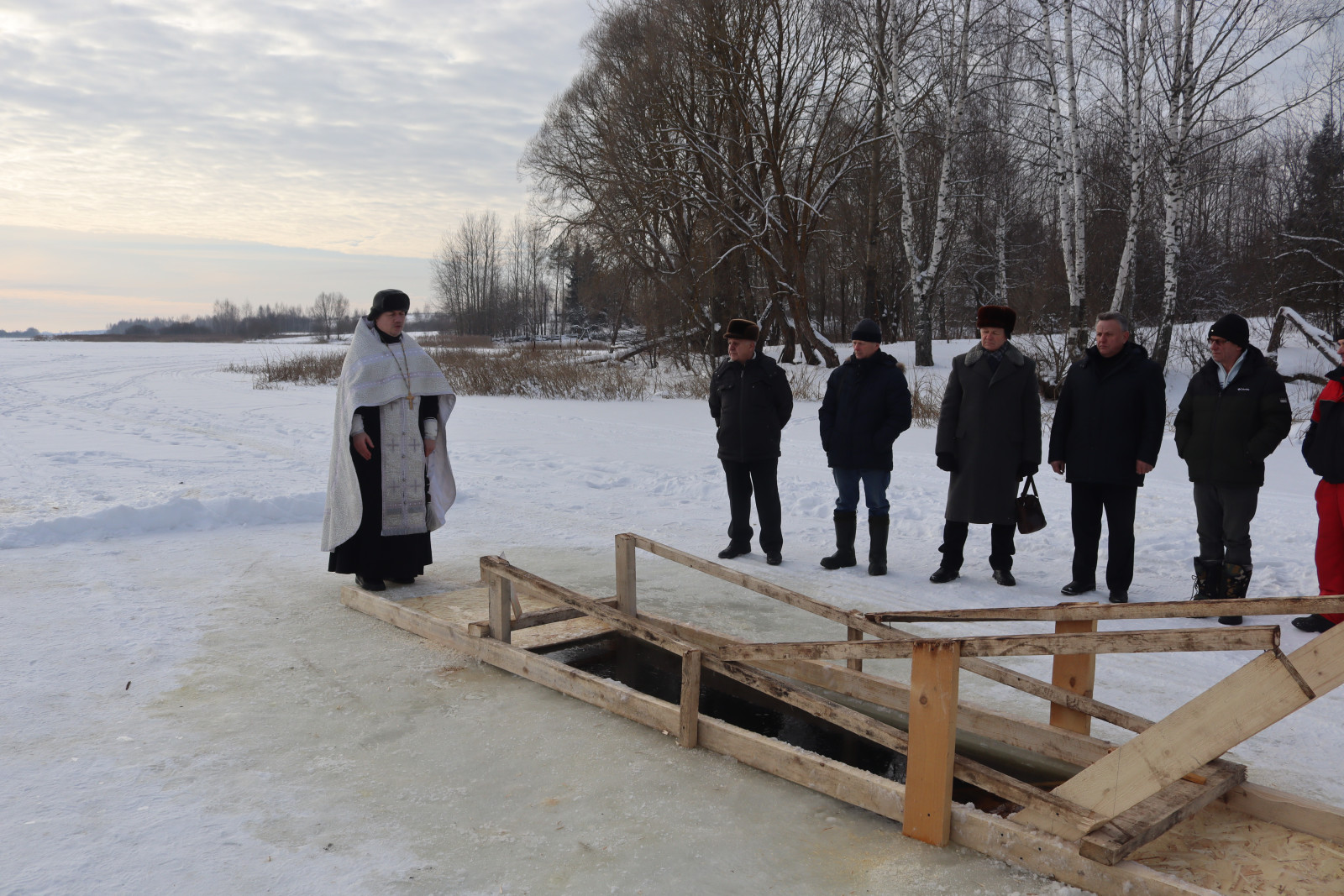 Глава округа Виктор Борисович Титов и жители Монастырщинского округа приняли участие в Божественной литургии и великом освящении воды на Ново-Внуковском водохранилище.