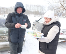 После завершения мероприятия был организован стол с горячим чаем, кашей и блинами. И по традиции были определены победители, которым были вручены заслуженные награды.