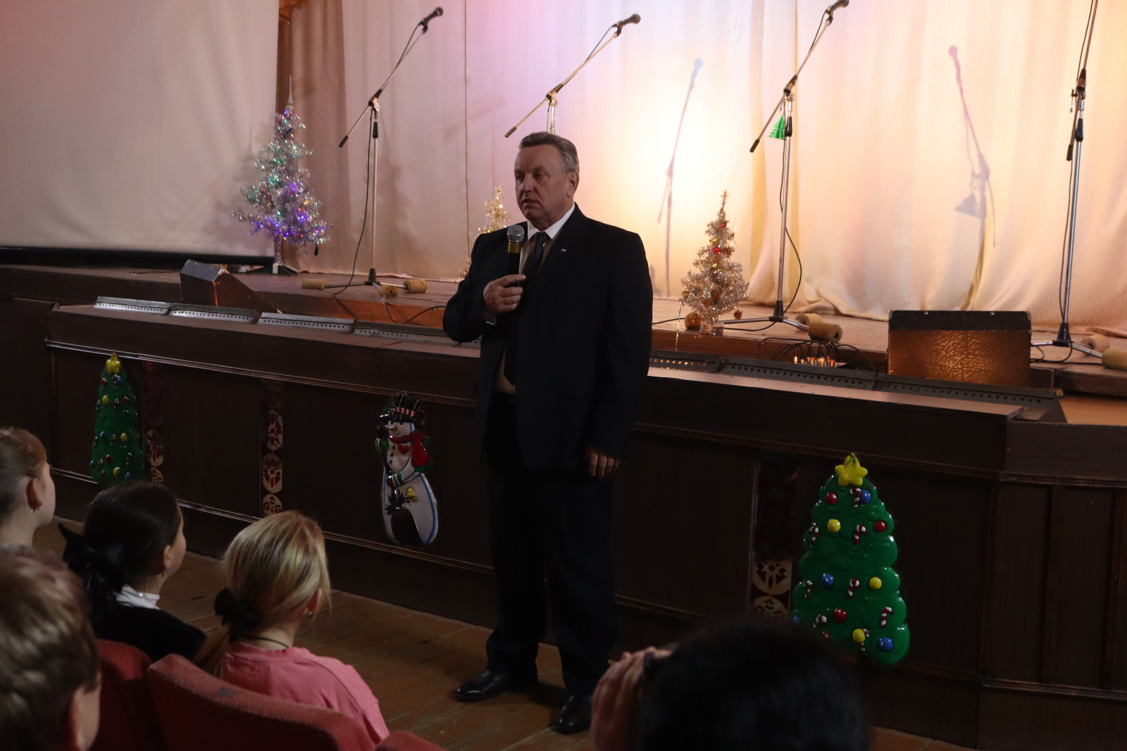Монастырщинский районный Дом культуры с теплотой встречал своих юных зрителей. С приветственным словом выступил Глава округа Виктор Борисович Титов. Он подчеркнул гордость за их родителей, участвующих в специальной военной операции, пожелал детям и их семьям мирного неба, здоровья, благополучия и веры в скорейшее возвращение близких.