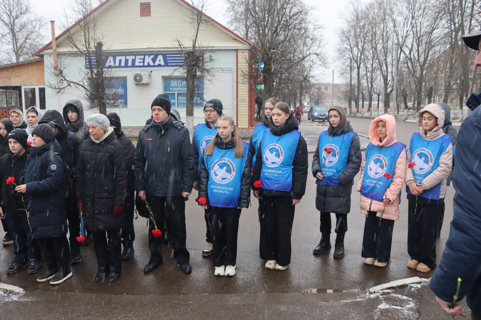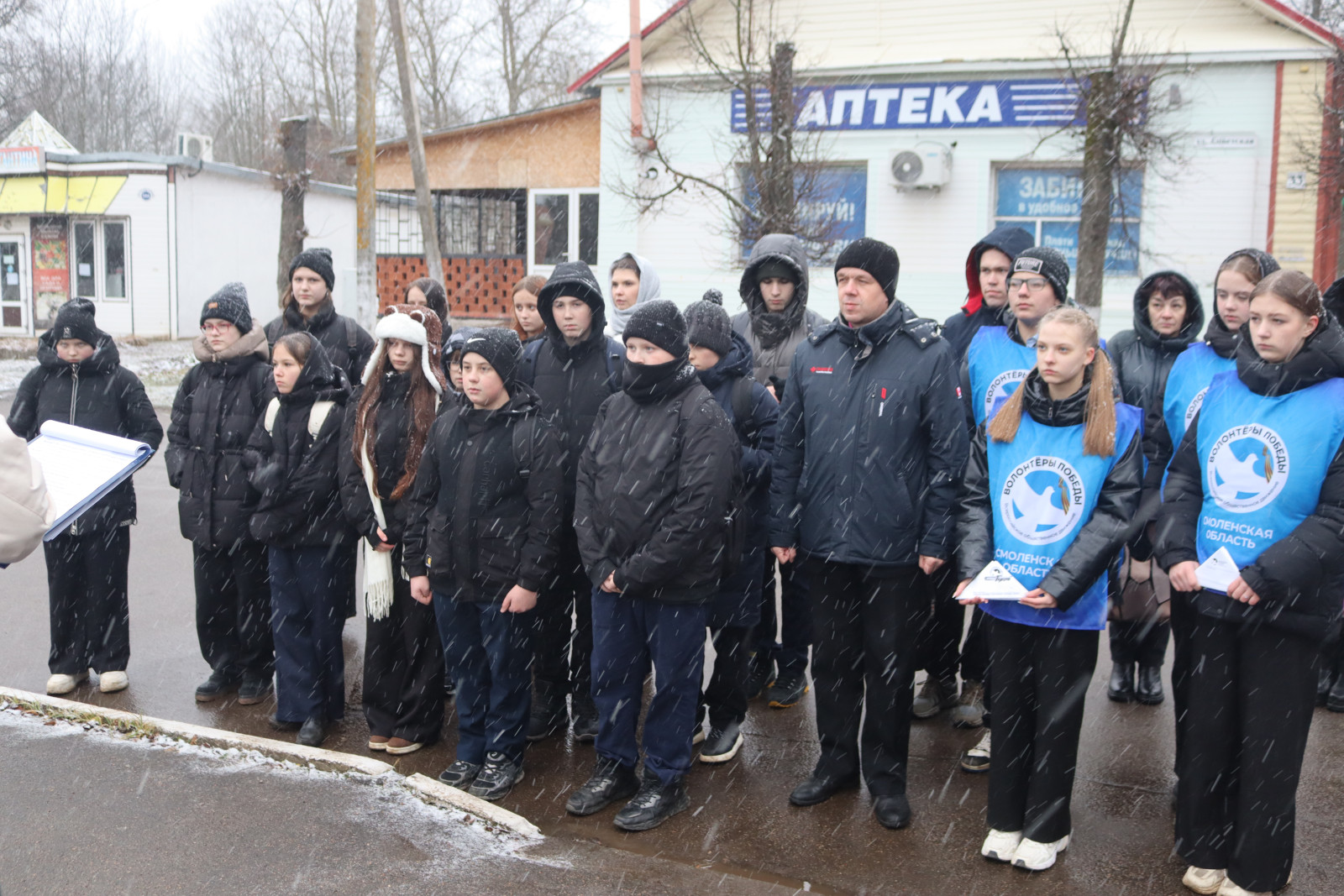 Сегодня, 9 декабря, в День Героев Отечества в п. Монастырщина прошел мини – митинг, организованный активистами движения «Волонтеры Победы» Монастырщинского округа.