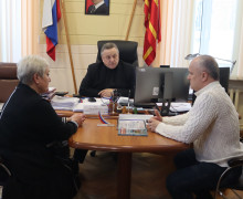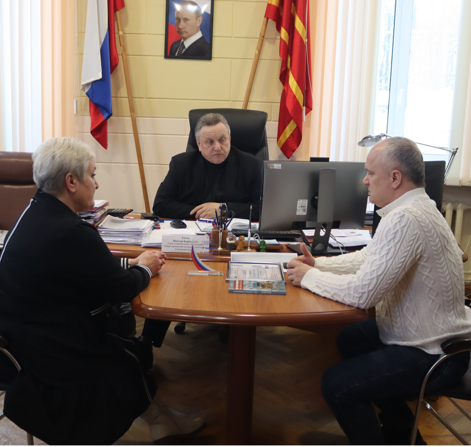 Глава округа Виктор Борисович Титов провёл рабочую встречу с председателем Соболевского территориального комитета Ларисой Фёдоровной Голуб и победителем Всероссийского конкурса «Лучшая практика гражданских инициатив» 2025 года, председателем ТОС «Крапивенское» Владимиром Викторовичем Гончаровым, занявшим первое место в номинации «Благоустройство и комфортная среда».
