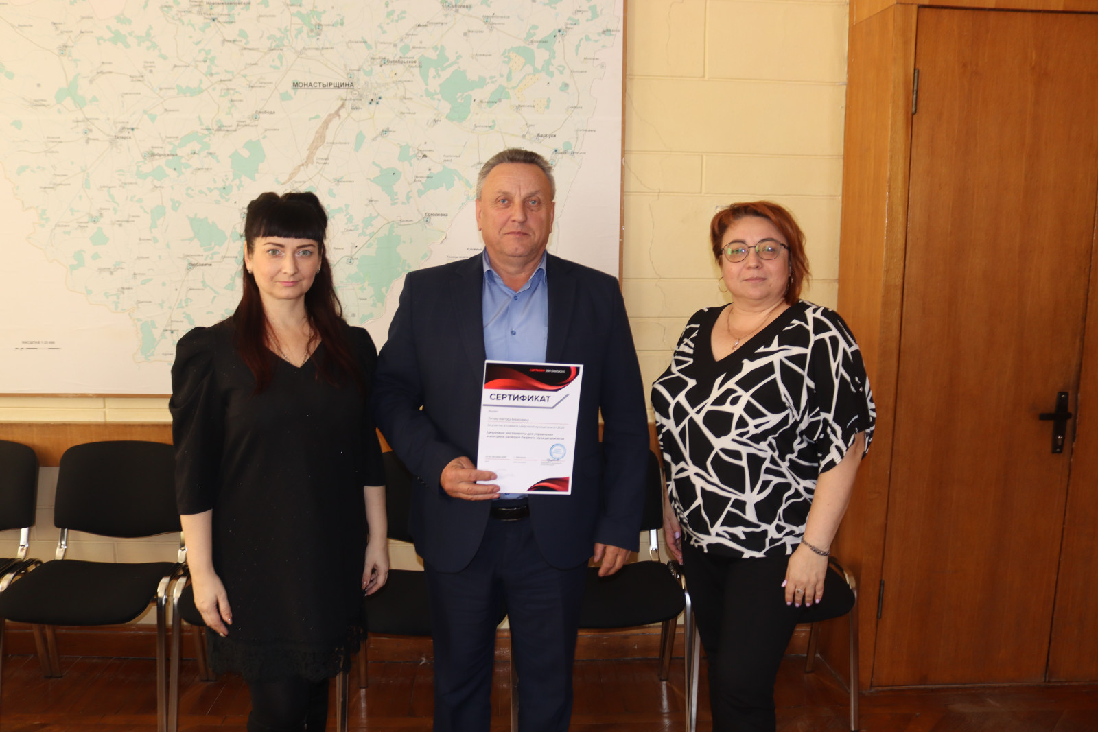 В ходе мероприятия была проведена презентация цифровой платформы Актион 360 и вручены сертификаты участникам саммита «Цифровой муниципалитет 2025»: Главе муниципального образования «Монастырщинский муниципальный округ» Смоленской области Виктору Борисовичу Титову, и.о. начальника Финансового управления Администрации муниципального образования «Монастырщинский муниципальный округ» Смоленской области Валентине Васильевне Ермачковой, начальнику отдела бухгалтерского учета и отчетности Администрации муниципального образования «Монастырщинский муниципальный округ» Смоленской области Ирине Ивановне Михальчук, главному специалисту контрактной службы Администрации муниципального образования «Монастырщинский муниципальный округ» Смоленской области Коноплевой Виктории Викторовне.