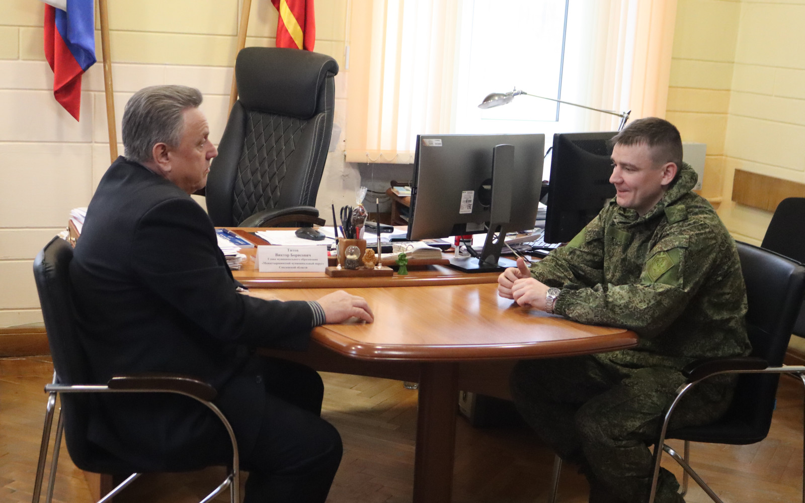 Глава Монастырщинского муниципального округа Виктор Борисович Титов провел рабочую встречу с начальником отделения в пгт. Хиславичи Пограничного управления ФСБ России по Смоленской области капитаном Павлом Викторовичем Медведевым.