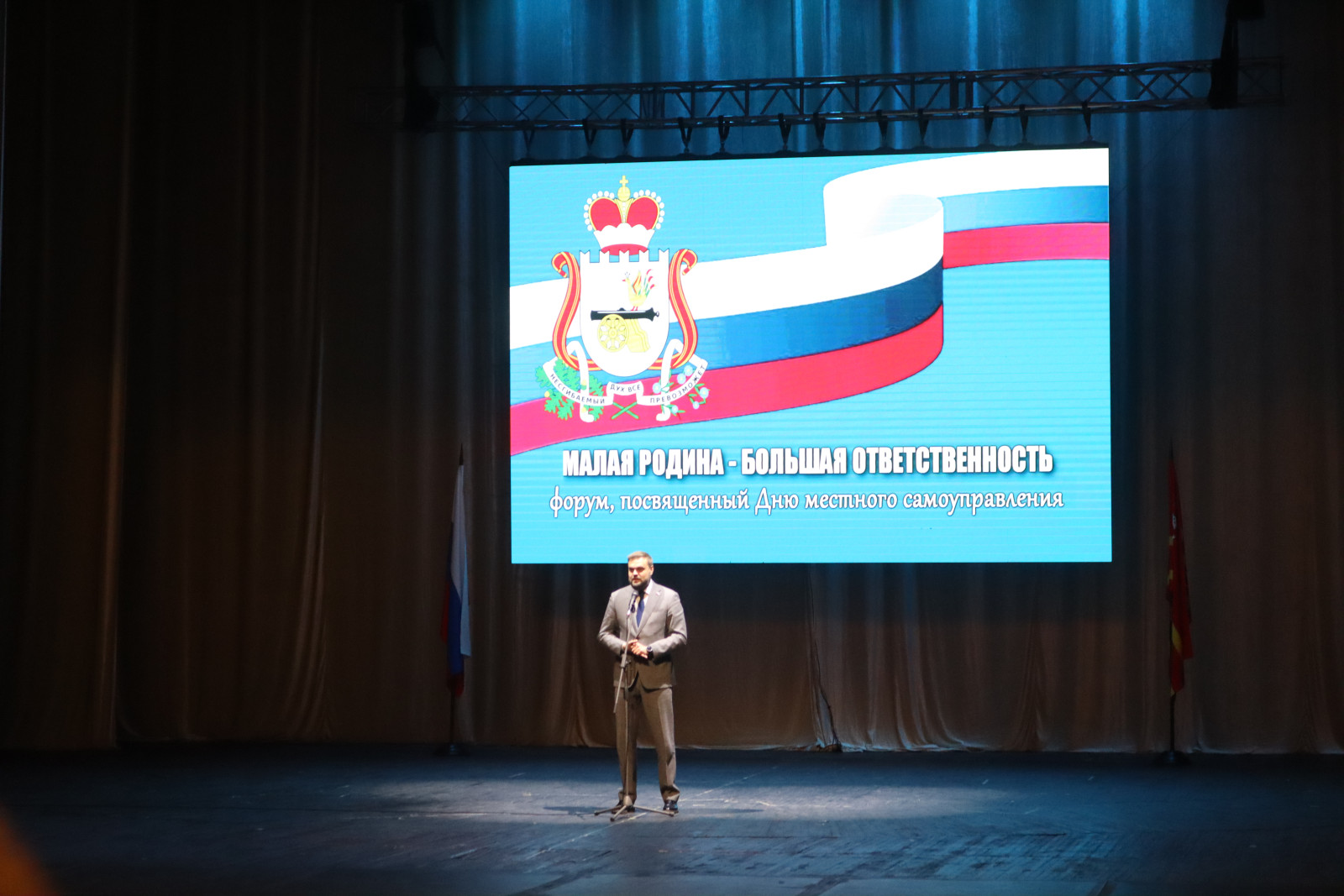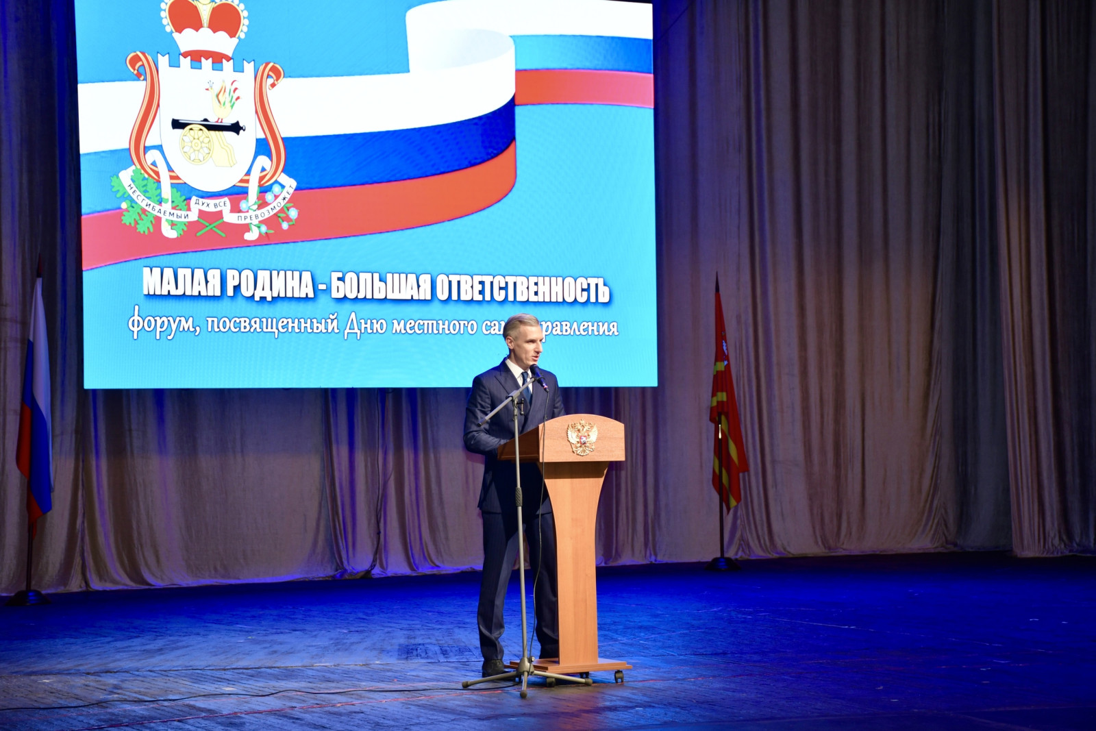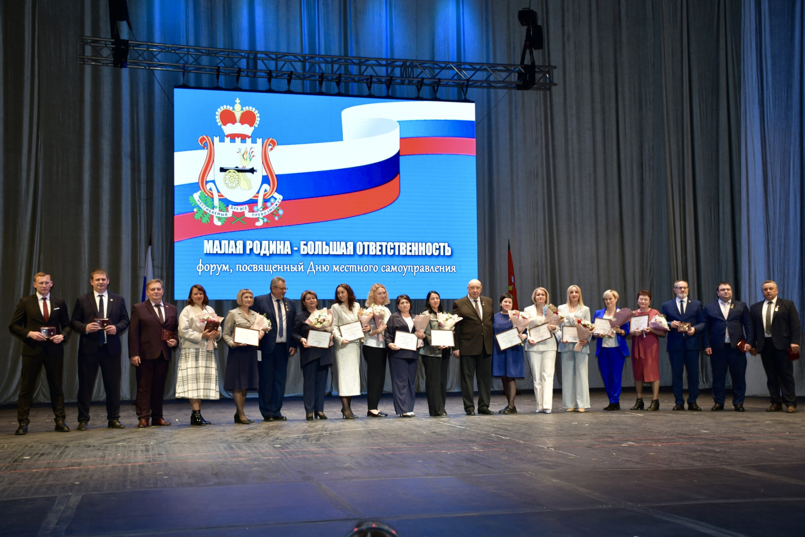 24 апреля в Смоленском драматическом театре им. А.С. Грибоедова состоялось торжественное мероприятие, посвящённое Дню местного самоуправления. Делегация Монастырщинского округа, которую возглавил Глава Виктор Борисович Титов, приняла участие в праздничной программе вместе с представителями муниципалитетов со всей Смоленской области.