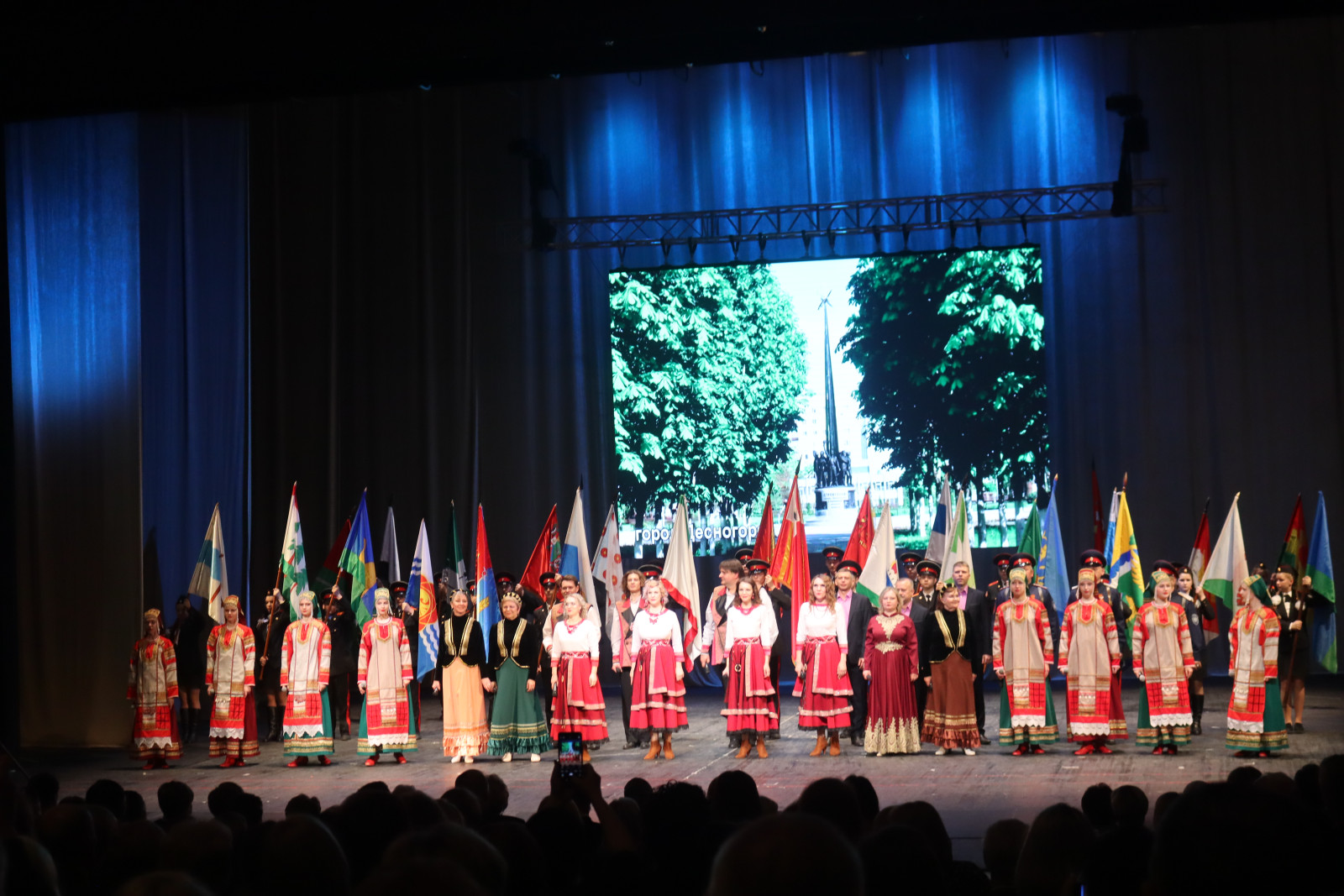 Официальную часть мероприятия украсили выступления лучших творческих коллективов региона, а в финале торжественно вынесли флаги всех муниципальных образований Смоленщины.