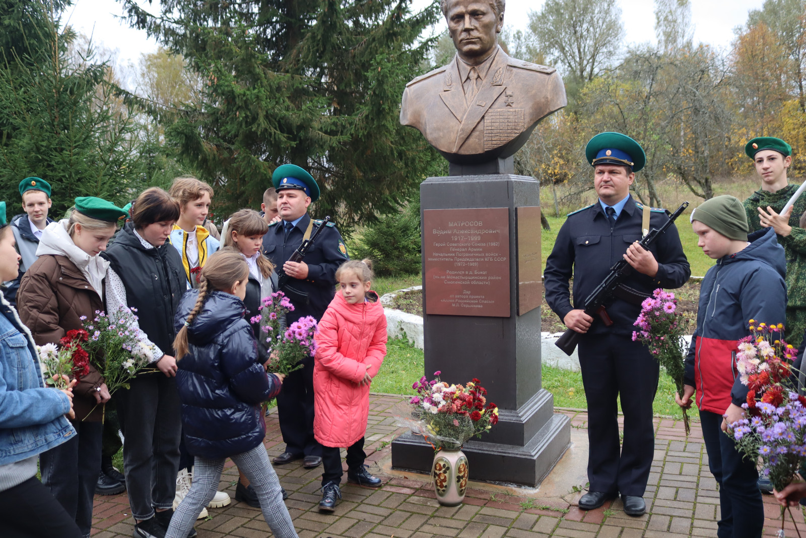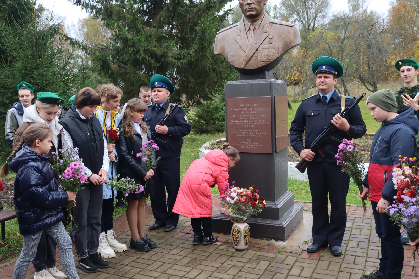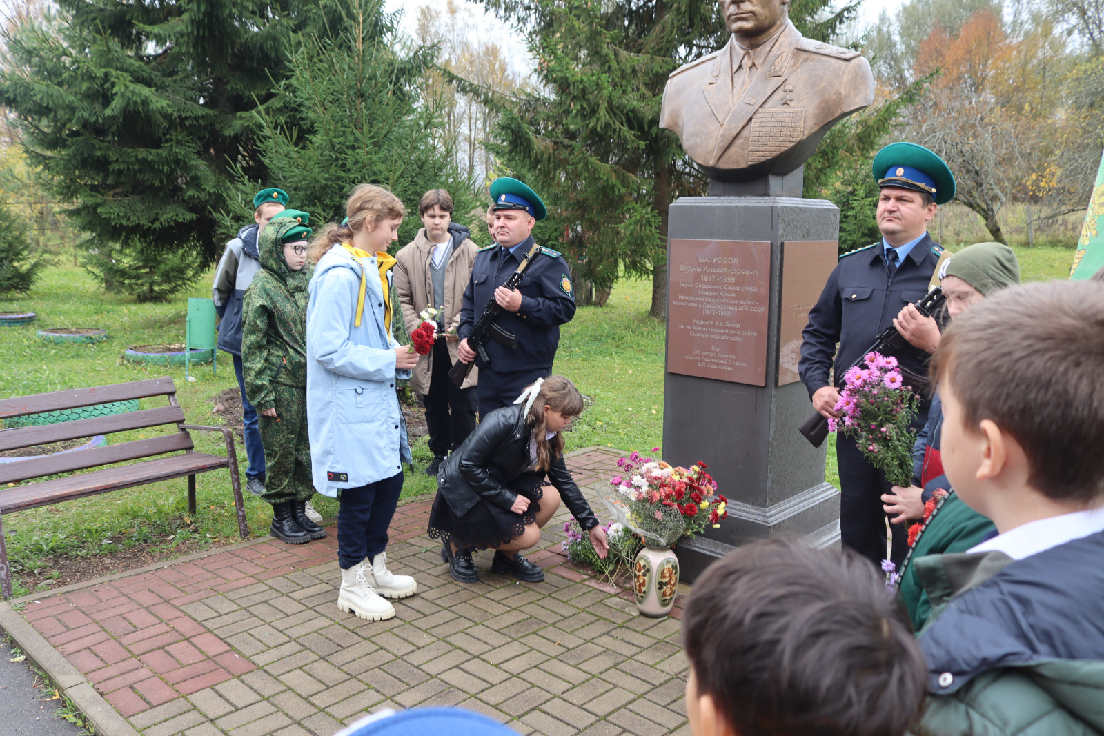 Завершилась торжественная линейка возложением цветов к подножию бюста Вадима Александровича Матросова, словно безмолвным поклоном перед величием его жизненного подвига.